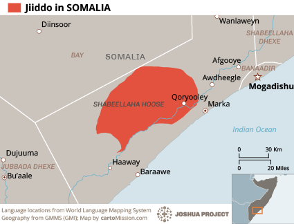 Ethnic Somalis are divided into various sub-groups. One of these groups is the Digil, which includes not only the Jiiddu but also the Dabarre and the Tunni. They are located in southern Somalia, between the Juba and Shebelle Rivers. This region has the richest agricultural land in the country, and the average temperature is only in the low 80s.