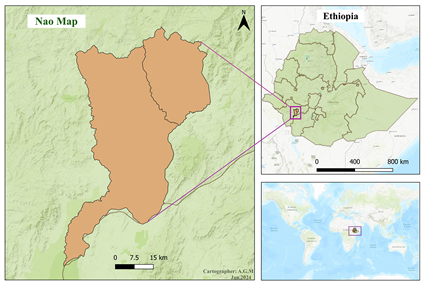The Naos are part of the Gimira cluster which includes the Dizi, the Tsara, the Benesho and the She. They and the Nao and the others in the Gimira cluster, inhabit the extreme southern and southwestern reaches of the densely forested Kaffa highlands of southwestern Ethiopia. They reside in an altitude of 1500-2500 meters which is not easily accessible. As opposed to the Dizi, the Benesho and others who are migrants to the area, the Nao together with the Tsara were the indigenous inhabitants of the land. They speak Nayi language, an Omotic language which has 58% lexical similarity with Diizin.