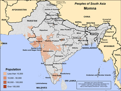 The Momna, also goes by the name Momin, has their name etymology from an Arabic term meaning "true follower of the faith." Originally identified as Hindus, they converted to Islam later and began primarily residing in Gujarat and Maharashtra, with niche populations in Tamil Nadu and Pakistan. They are mainly farmers and caste association is prevalent in their community. The Momna are divided into three main Islamic subdivisions: Sunni, Shia and Wahabi. These three live separately and rarely intermarry. These divisions have caused major rifts within the Momna community.