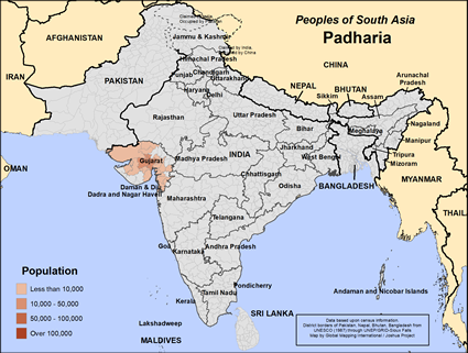 The large majority of the Padharia profess to be Hindus. Their brand of Hinduism is influenced by traditional animism and a veneration for their ancestors. As a tribal group the Padharia are considered by higher castes to be a lower community, outside the Hindu system.