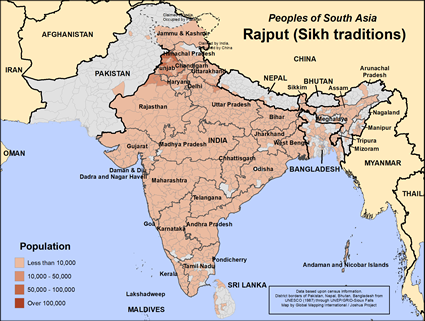 All Rajputs rightly boast of their military prowess, and many own agricultural land as well. While the Sikh population tends to be concentrated in Punjab State, its neighbor to the south, Rajasthan, is home to most Rajputs. Though millions of Rajputs are Hindu, there are more than a million Sikhs among them.