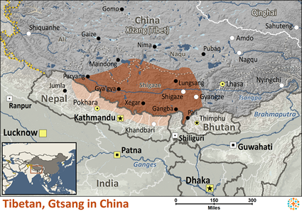 The Gtsang Tibetans are part of the Tibetan nationality, but they speak a language only partly intelligible with other Tibetan varieties.