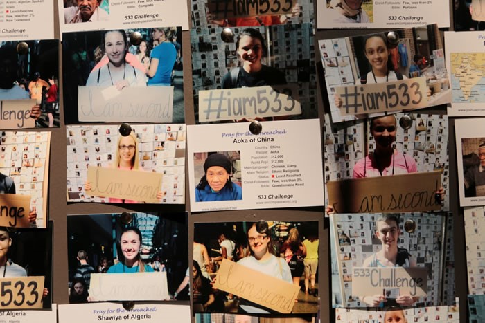 The creative thinkers at Encompass World Partners came up with a great idea called the 533 Challenge. At a recent Momentum Youth Conference, a wall of 533 prayer cards was displayed showing the faces of the least-reached peoples in the world - 533 people groups who have little or no opportunity to hear the gospel.